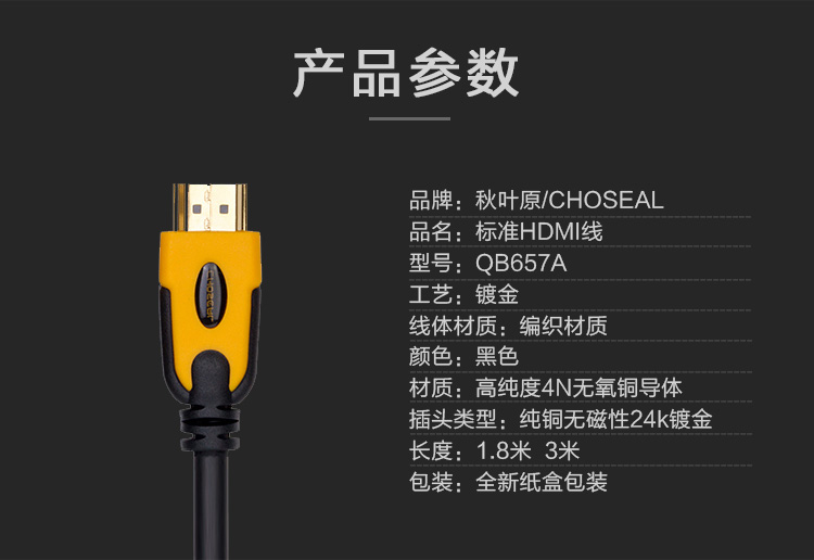 产品名称: 秋叶原/CHOSEAL标准HDMI线
