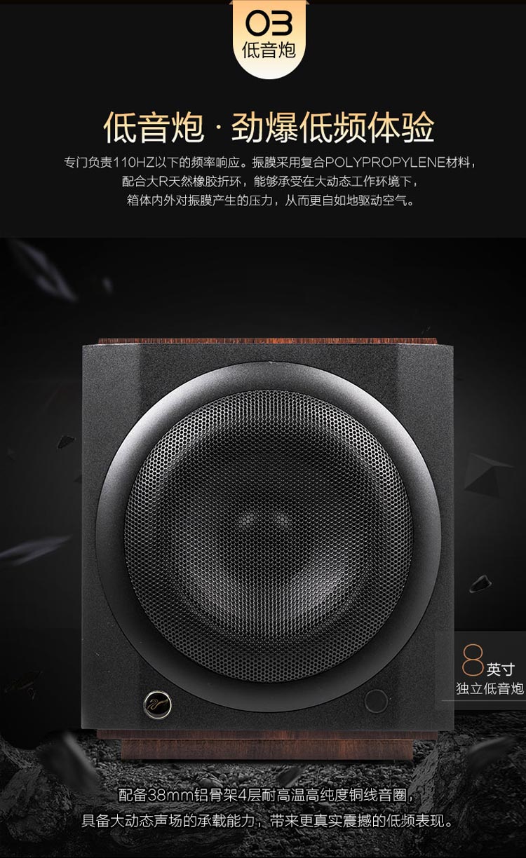 频率范围: 主箱:36Hz-110Hz(-3dB) 副箱:110Hz-20kHz(-3dB)