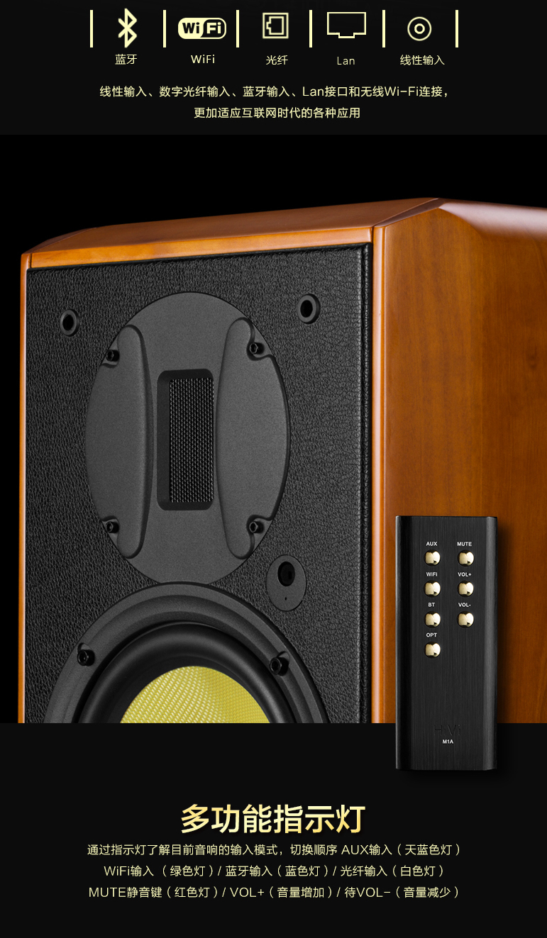 音源输入: 线路输入,光纤,蓝牙,WiFi,RJ45