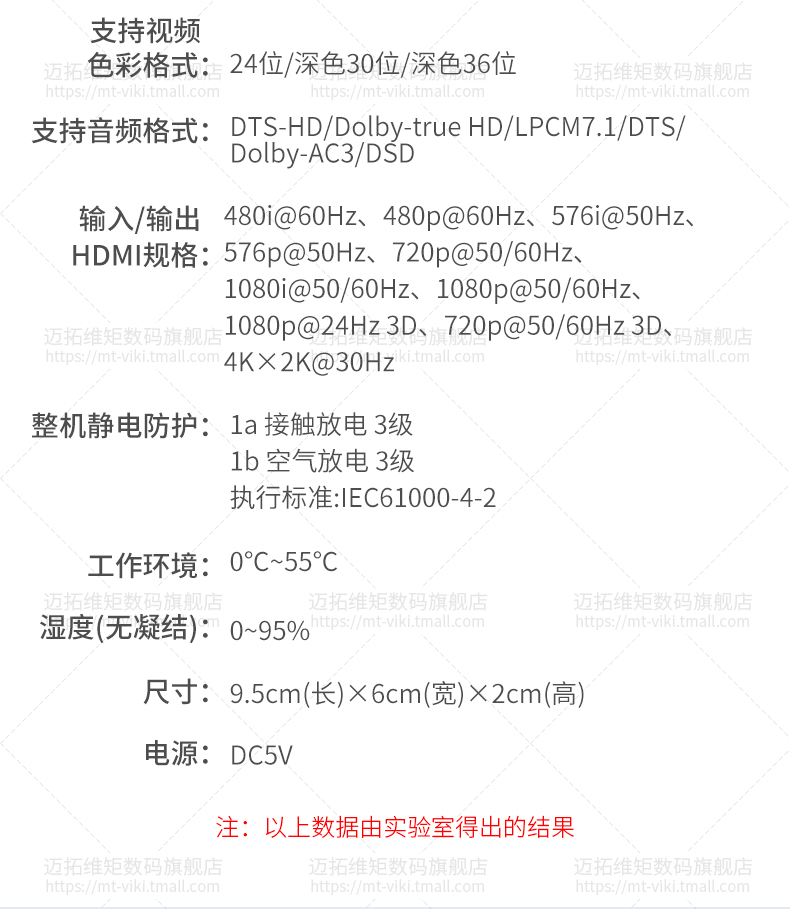 输入/输出HDMI规格: 480i@60Hz、480p@60Hz、576i@50Hz、 576p@50Hz、720p@50/60Hz、 1080i@50/60Hz、1080p@50/60Hz、 1080p@24Hz3D、720p@50/60Hz3D、 4K * 2K@30Hz