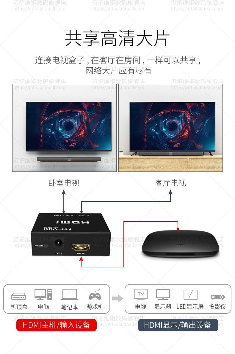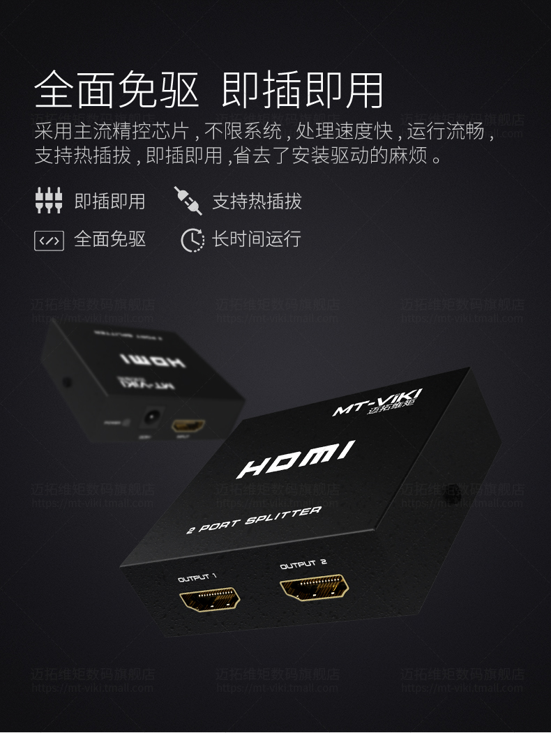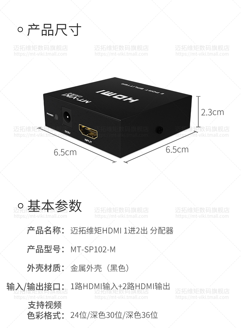 产品名称: 迈拓维矩HDMI1进2出分配器